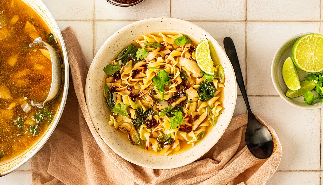 Ce bol de nouilles léger, savoureux et nourrissant, combine les arômes chinois à un bouillon de style vietnamien. Les nouilles extra larges No Yolks conservent toute la saveur sans rendre ce plat trop lourd, ce qui en fait le choix idéal pour le Nouvel An lunaire, comme pour la cuisine de tous les jours !
